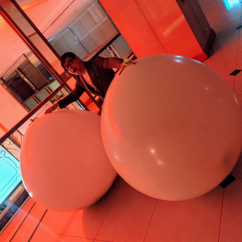 スパークバルーンは大きな風船を割ると中から沢山の小さな風船が出てくる風船くす玉です。