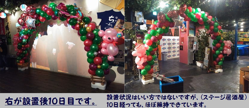 アーチは気候や環境に大きく左右されますが屋内であれば10日ぐらいはほぼ形は変わらないです。