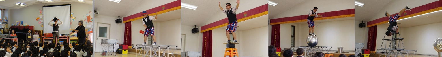 演目はバルーンアート、ジャグリング(おてだま、中国ゴマなど)、バランス芸(ローラボーラ、玉乗り、椅子の逆立ちなど)となります。